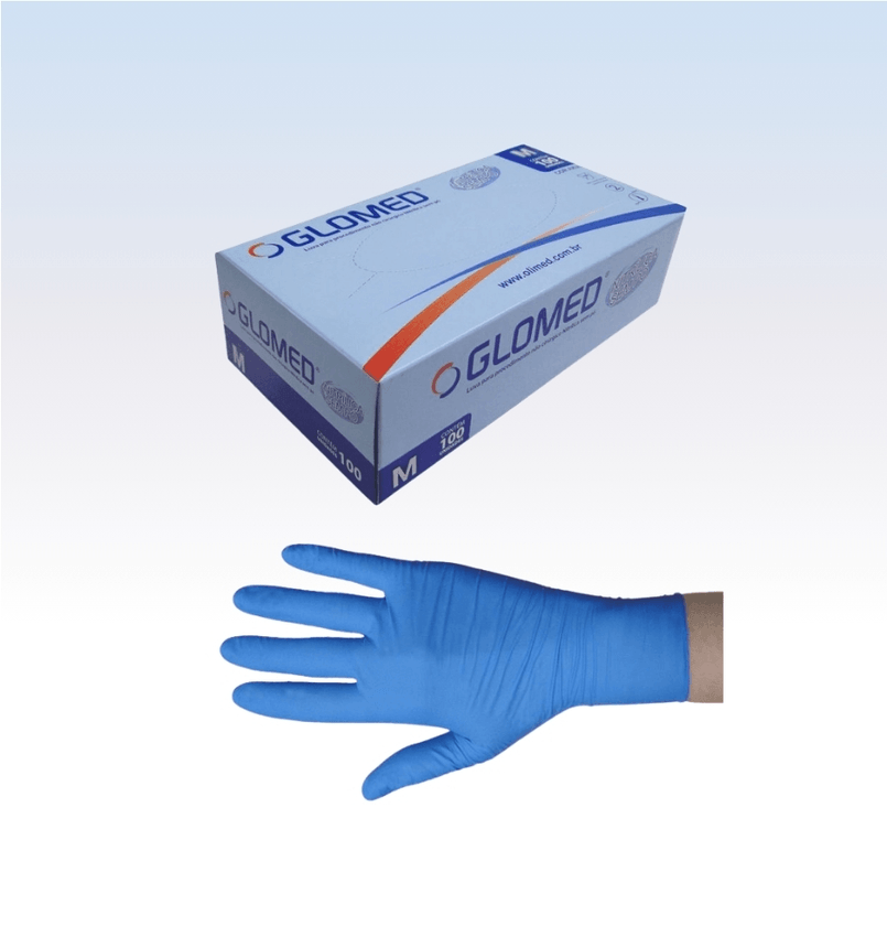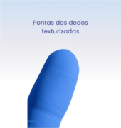 Descrição: As luvas de procedimento são confeccionadas em borracha sintética (nitril). São ambidestras, lisas, isentas de pó e com superfície texturizada nas pontas dos dedos.