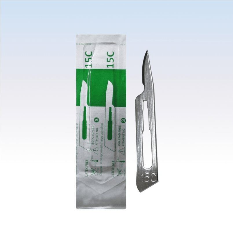 As lâminas são embaladas individualmente em um pacote de folha de alumínio para evitar que a borda fique em contato com outra lâmina. Abertura asséptica, esterilização por irradiação gama.