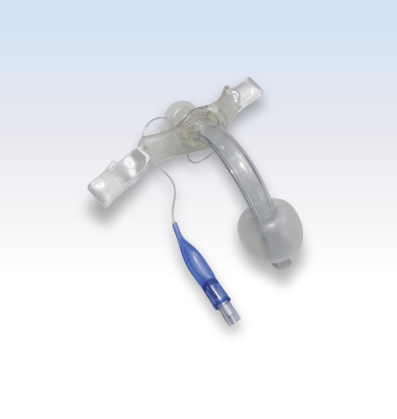 Descrição: A cânula de traqueostomia é composta por um tubo em PVC siliconado, cânula radiopaca com formato anatômico, superfície lisa e ponta arredondada, evitando risco de trauma. Contém balão em formato de barril e conector padrão de 15mm, com válvula em aço inoxidável. Possui suporte em tecido (cetim).
