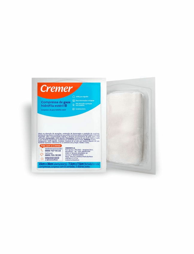 Início › HOME CARE › Curativos › Compressa › Compressa 7,5 x 7,5 11 fios estéril pct c/ 10 unds cremer (5607)